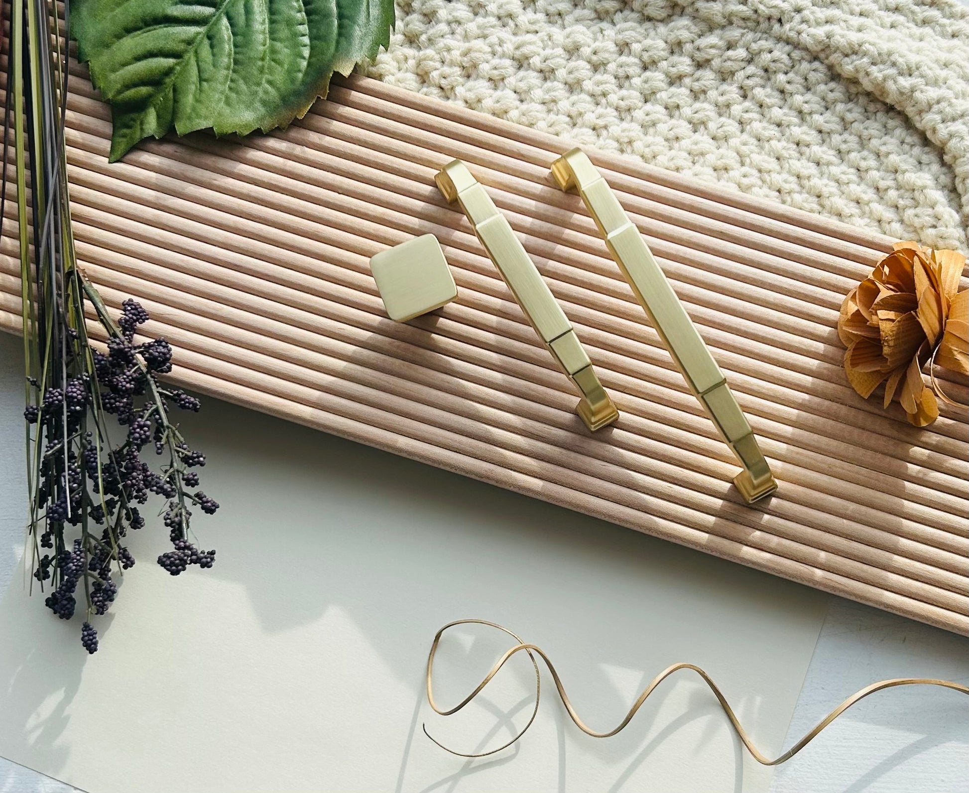 Elevate the look of your cabinets and furniture with our 6 pack of modern champagne gold handles. Crafted from durable metal, these handles feature a luxurious champagne gold finish, adding a touch of elegance to any space. Their sleek and versatile design makes them suitable for a variety of applications, from kitchen cabinets to dressers. With a convenient 6 pack, you'll have everything you need to give your space a modern and cohesive upgrade.